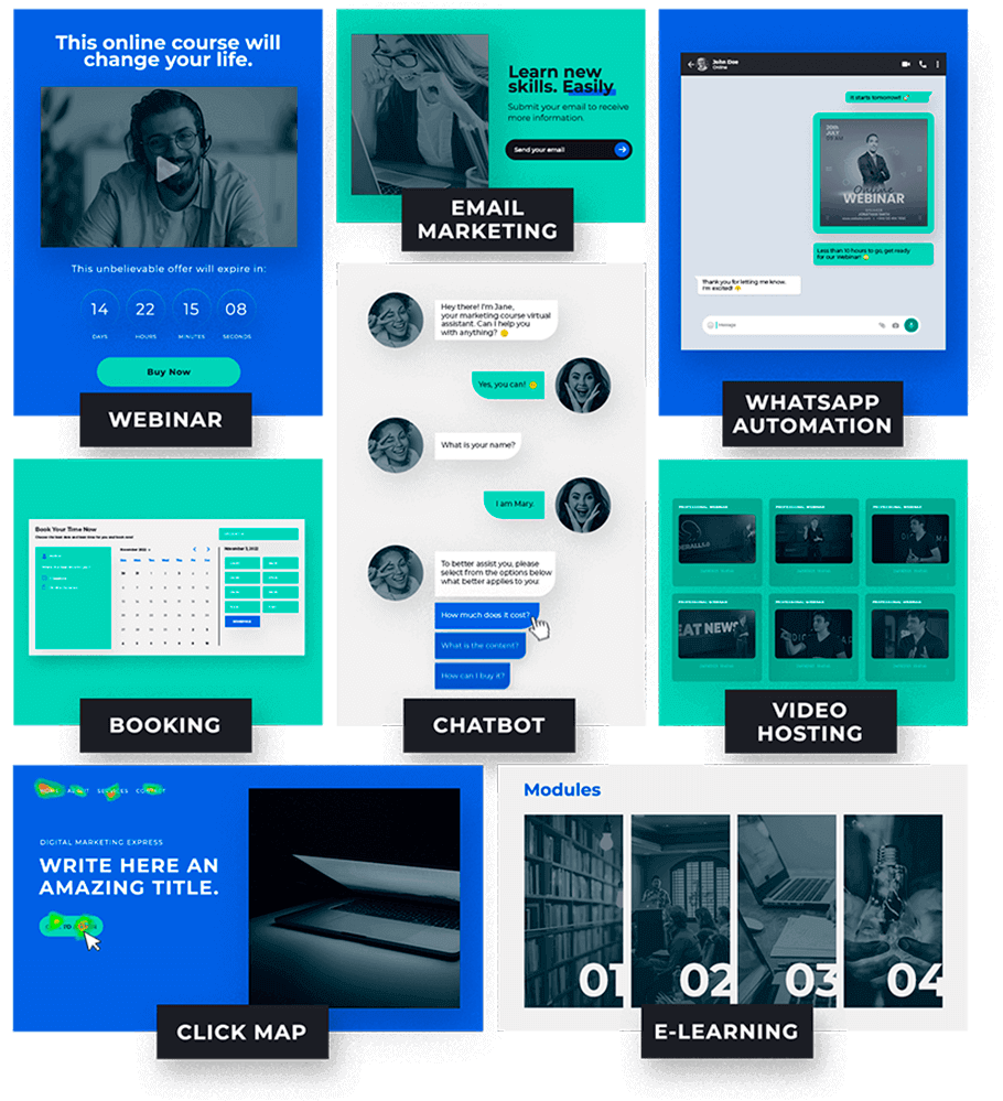 Com o sistema arraste e solte da Builderall, você pode adicionar facilmente textos, galerias de imagem, artes prontas, incrivéis funcionalidades, funis de venda de alta conversão, websites, páginas e áreas de membros.