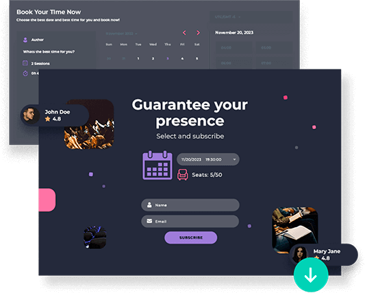 Sucesso no seu próximo evento online trazendo mais engajamento, visualizações e vendas. Tenha páginas de cadastro personalizadas, crie enquentes ao vivo, e sessões de perguntas e respostas. Temos centenas de recursos para garantir que seu próximo webinar seja um verdadeiro sucesso.